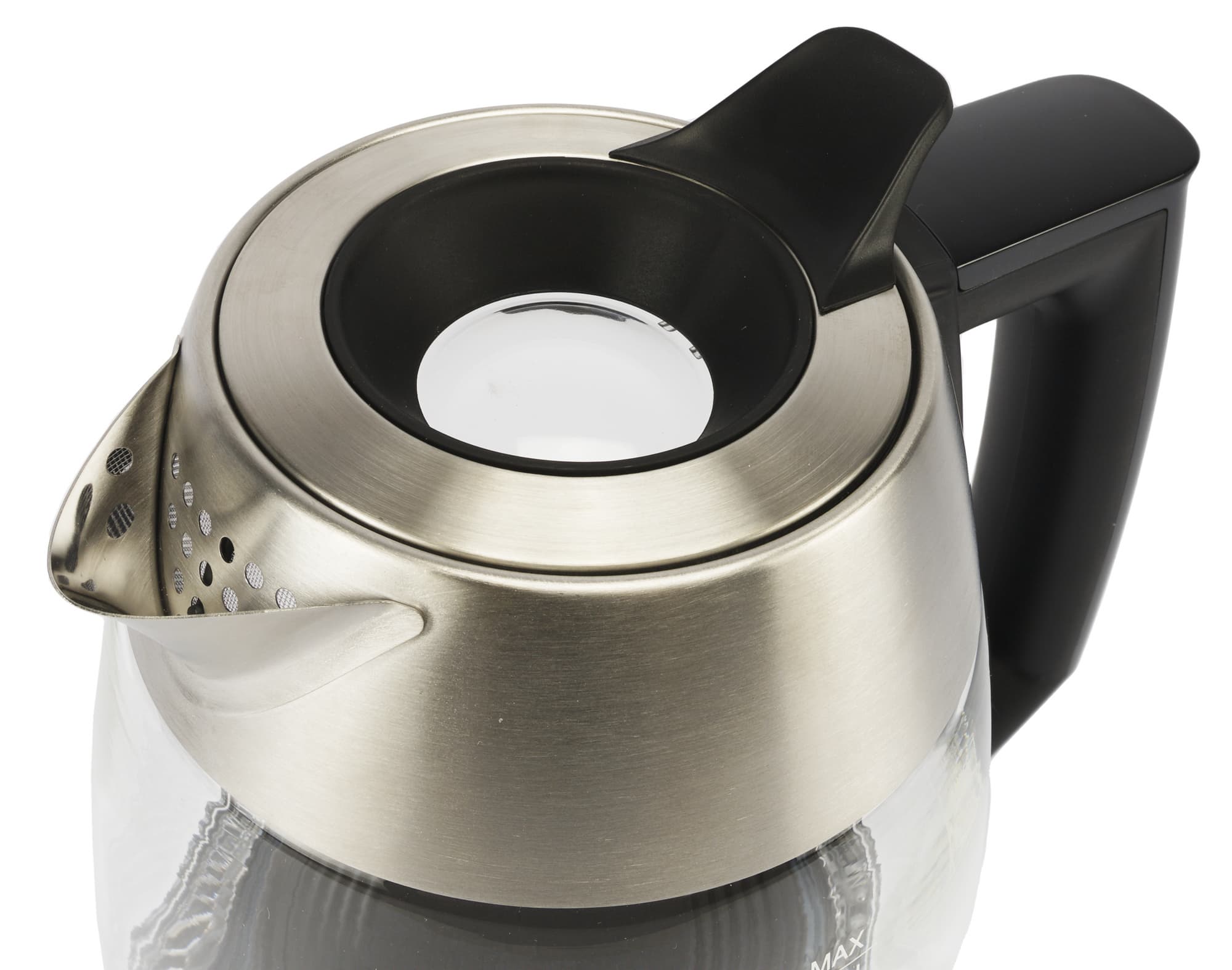 Стеклянная колба дает возможность оценить уровень воды в чайнике, ее легко мыть благодаря съемной крышке. Понятно, что со стеклянным чайником надо быть осторожными — но часто ли вы роняете чайник?