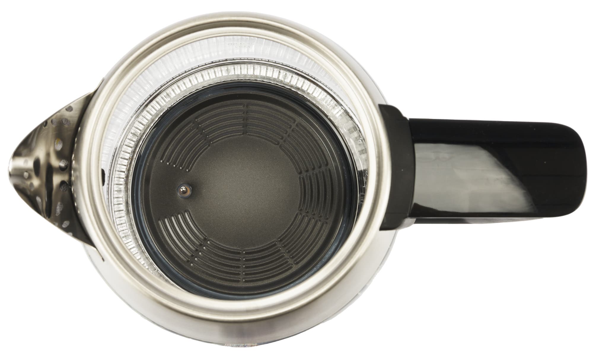 В верхней части пластиковой базы расположена контактная группа, которая позволяет чайнику свободно вращаться.