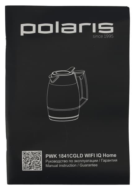 Инструкция напечатана на плотной глянцевой бумаге, содержит 76 страниц и информацию на русском и казахском языках. Большим достоинством является наличие иллюстраций, которые просто и доступно поясняют особенности использования чайника, а также настройку и использование функции удаленного контроля через приложение Polaris IQ Home.