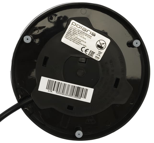 Снизу у базы находится отсек для намотки излишков шнура, три резиновых ножки, препятствующих скольжению, и шильда с технической информацией.