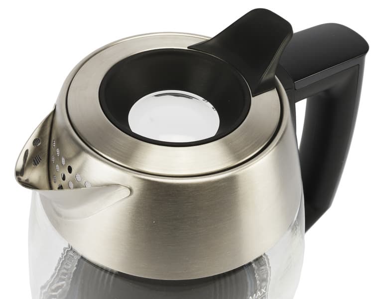 Чайник производит впечатление элегантного и приятного глазу прибора. Стеклянная колба, черная пластиковая ручка с панелью управления (о ней мы расскажем в разделе «Эксплуатация») и крышка с системой Waterway Pro (которой, надо сказать, мы не сразу поняли, как пользоваться).
