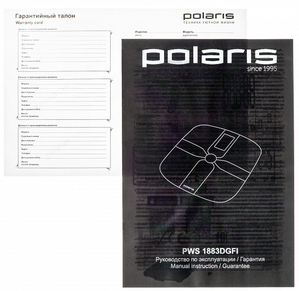 Руководство по эксплуатации представляет собой брошюру формата А5 на плотной глянцевой бумаге. Четыре страницы содержат подробные сведения об устройстве весов, их применении, уходе за ними, а также технические характеристики прибора и сведения о гарантийных обязательствах.
