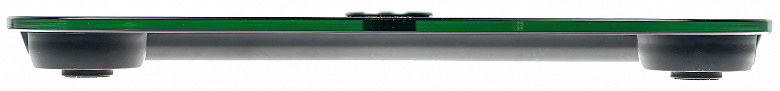 Панель весов сделана из многослойного закаленного стекла. Верхний слой содержит четыре токопроводящих сегмента иссиня-черного цвета. Их назначение — с помощью слабого постоянного тока измерять сопротивление тела человека, стоящего босыми ногами на платформе. Электроды Polaris PWS 1883DGFI интегрированы в стеклянную панель и не выделяются над поверхностью (у большинства диагностических весов бытового класса — наоборот). Это облегчает уход за прибором и, на наш взгляд, украшает устройство. Подложка панели черная.