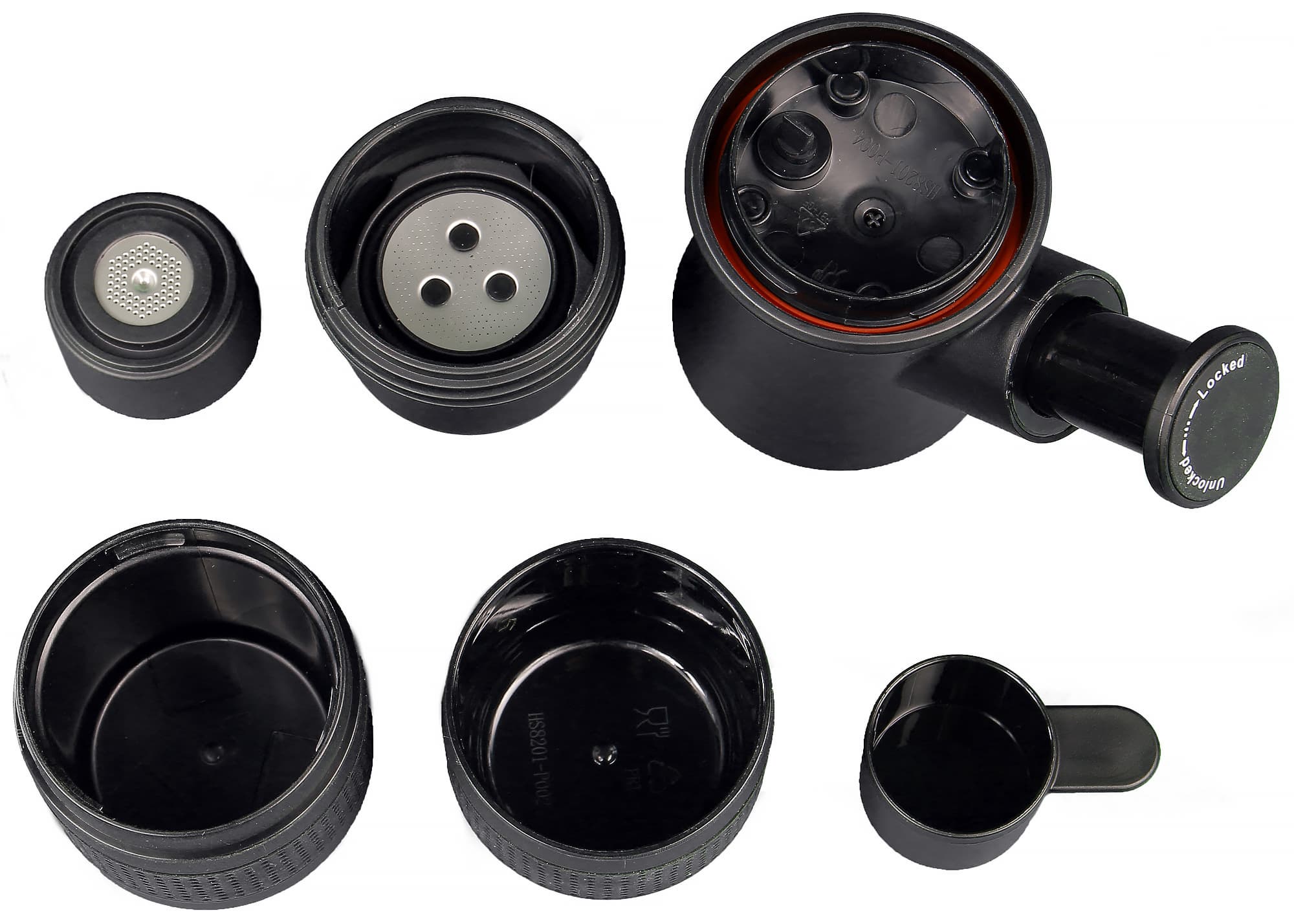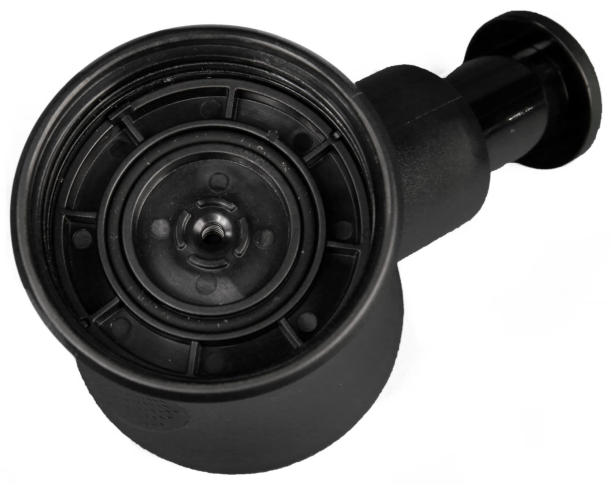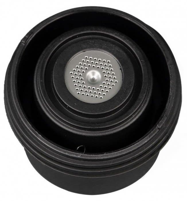 Насадка-носик также оснащена металлическим фильтром и крепится к центральному блоку с помощью резьбового соединения. В процессе установки насадки-носика фильтр автоматически зажимается между центральным блоком и насадкой, дополнительно прессуя кофе, а резиновые прокладки обеспечивают герметичность соединения.