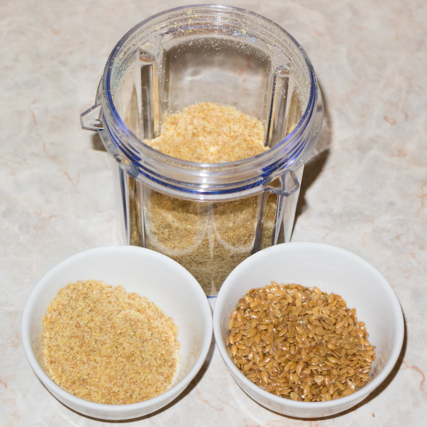 В итоге мы получили прекрасно и равномерно перемолотую массу льняных семян. Эту муку можно использовать при выпечке хлебобулочных и кондитерских изделий.
