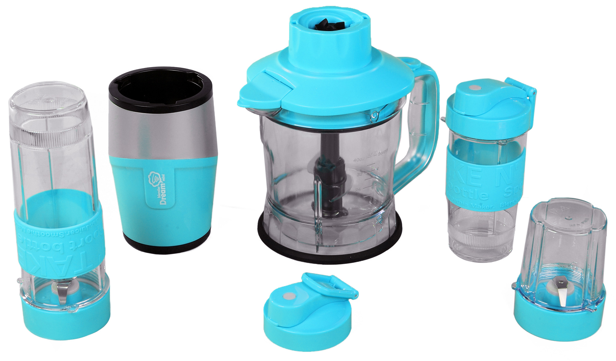 | Аксессуары | основная чаша объемом 1200 мл, две спортивных бутылки объемом 570 и 400 мл, две герметичные крышки для них, малая емкость объемом в 200 мл, три ножа: для измельчителя, для спортивных бутылок и для малой емкости |
