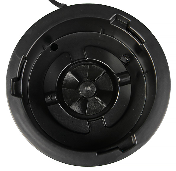 Управлять мини-блендером крайне просто. При использовании функции измельчения, т. е. когда моторный блок размещается сверху, кнопка включения находится под мягким резиновым основанием. Она хорошо ощущается при надавливании. Когда прибор используется в качестве непосредственно блендера, он включается при установке стакана и закреплении его на моторе. Сверху на углублении моторного блока имеются три паза, в которые должны быть вставлены соответствующие лепестки, расположенные в верхней части стаканов.