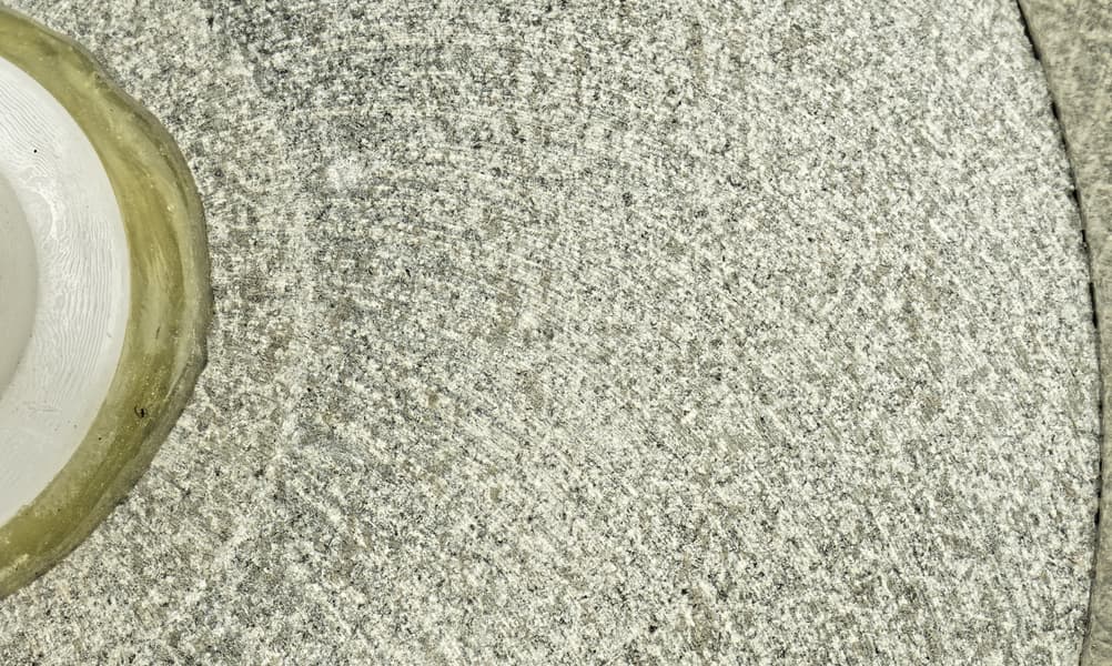 Дно слегка шершавое. Кстати, заострим внимание читателя на наличии радиальной борозды и многочисленных неглубоких спиральных бороздок на поверхности дна. Есть мнение, что эти бороздки позволяют продукту измельчаться более эффективно, так как нижний жернов в классической схеме должен быть снабжен целой системой борозд разной глубины и направления.