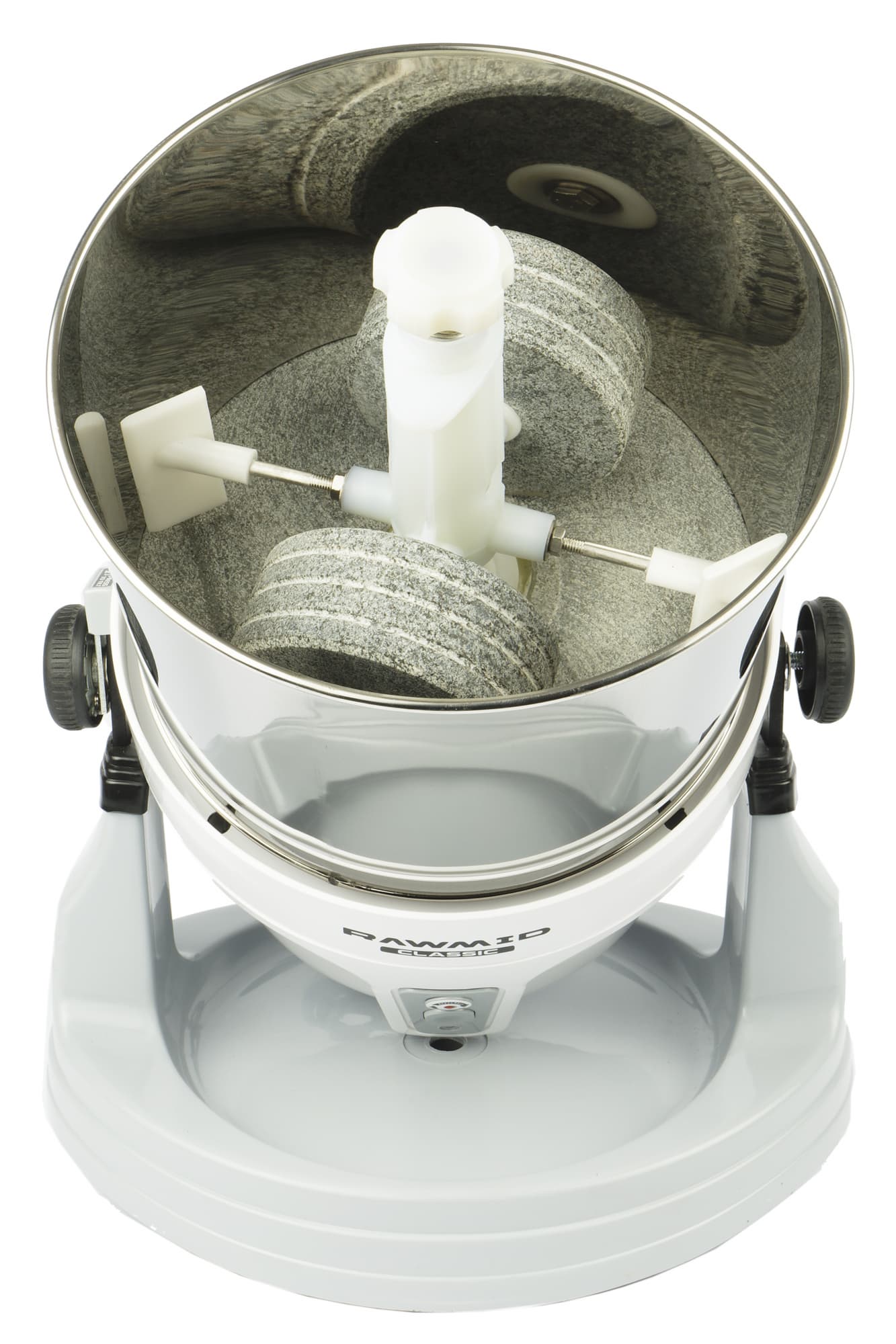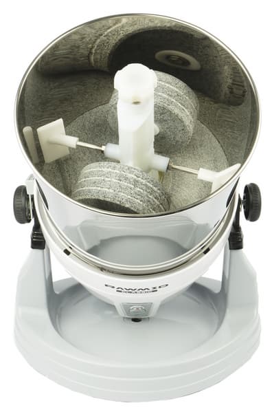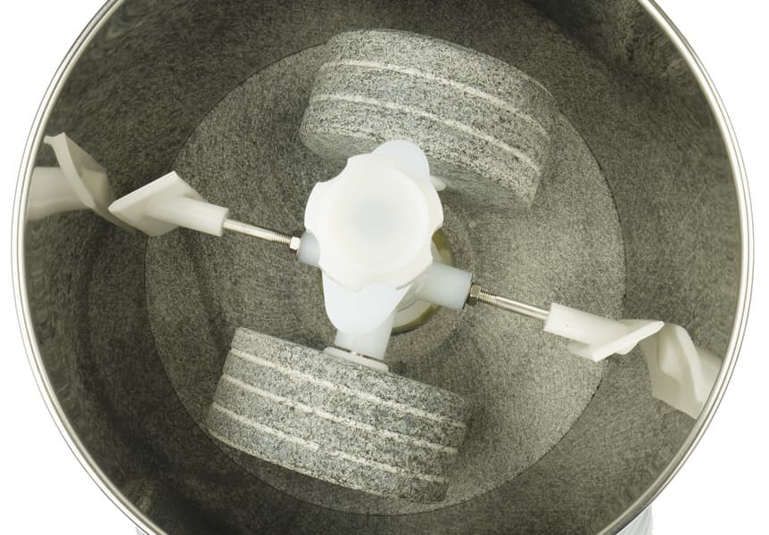 По описанию компании-поставщика, Rawmid Classic RCM-02 — аппарат не столь узкоспециализированный, как может показаться на первый взгляд. В целом, результаты тестирования его предшественника это подтвердили. С помощью меланжера можно не только готовить чрезвычайно нежный шоколад, но и замешивать тесто, молоть кофе и специи, а также приготовить муку из круп, ореховые пасты, урбечи, тахини и фруктово-ягодные пюре. Вперед, читатель, посмотрим на гранитные жернова в действии!
