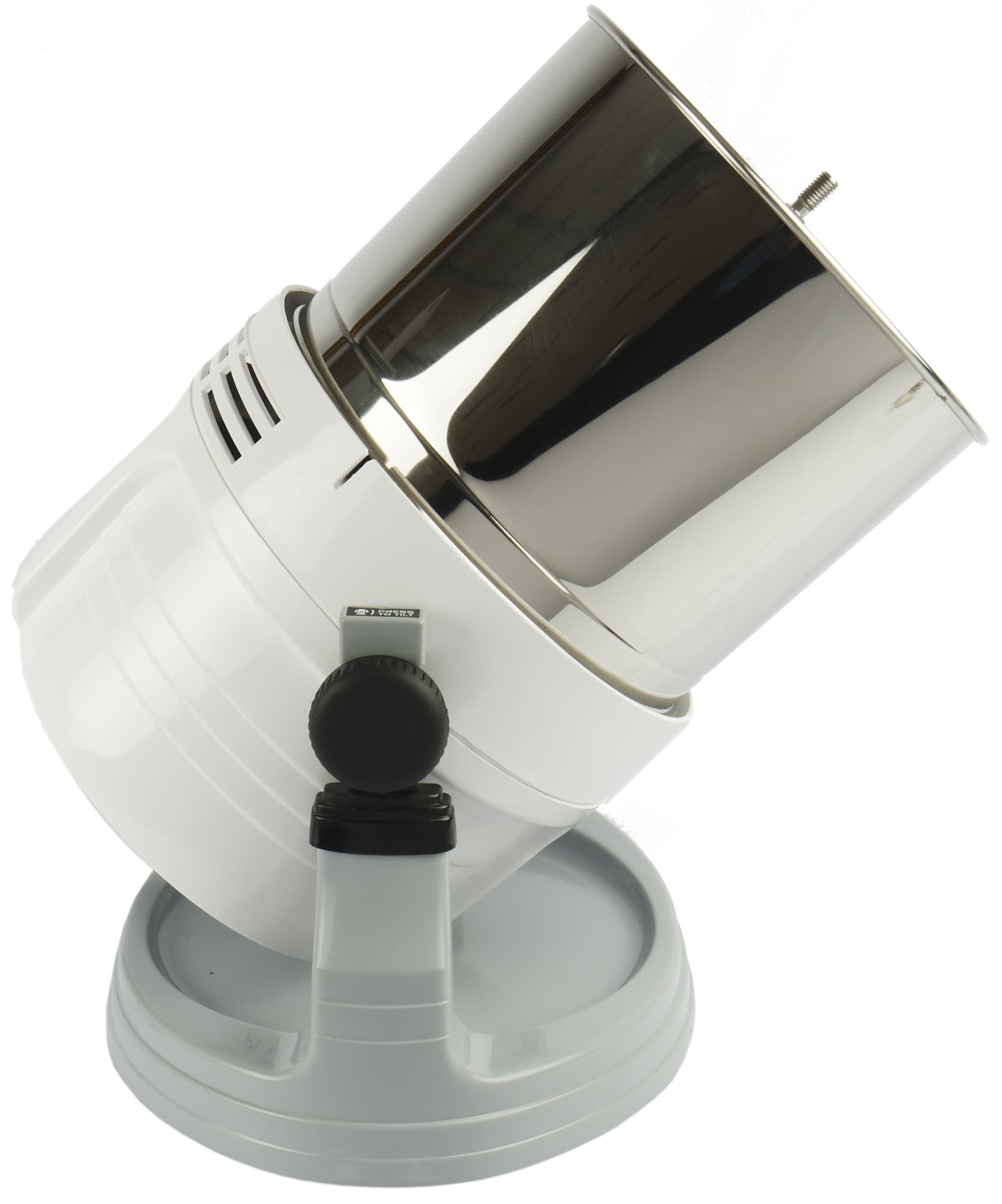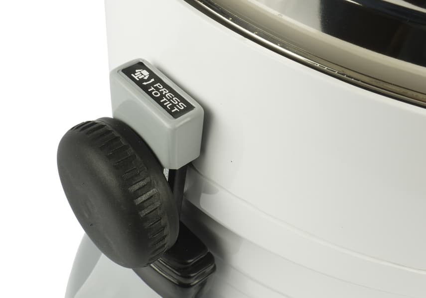 При нажатии на левый фиксатор моторный отсек вместе с закрепленной на нем чашей наклоняется. Чаша может находиться в нескольких положениях: примерно на 45°, 90° и 120°, что значительно облегчает слив готового продукта в емкость для хранения.