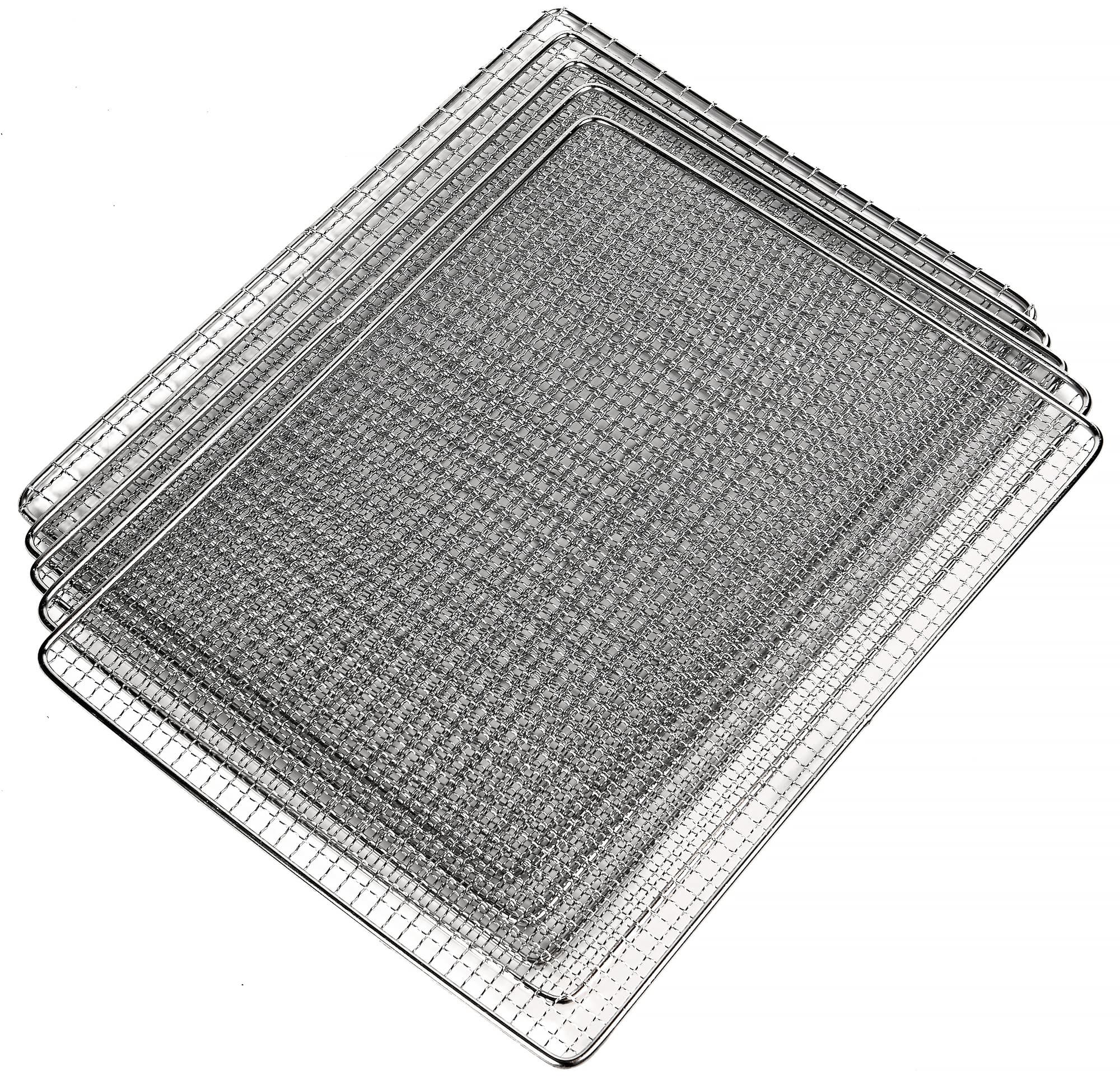 Сетки и поддон отлично отмываются как в посудомоечной машине, так и руками, теплой водой без использования жестких мочалок и абразивных моющих средств. Если что-то — например, сироп от цукатов — отмыть с первого раза не удается, всегда можно замочить лоток на пару часов в воде с моющим средством.