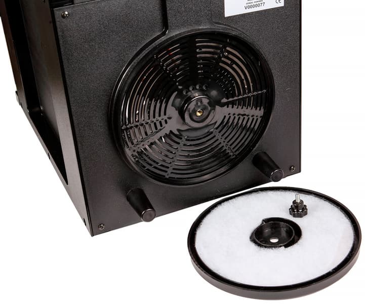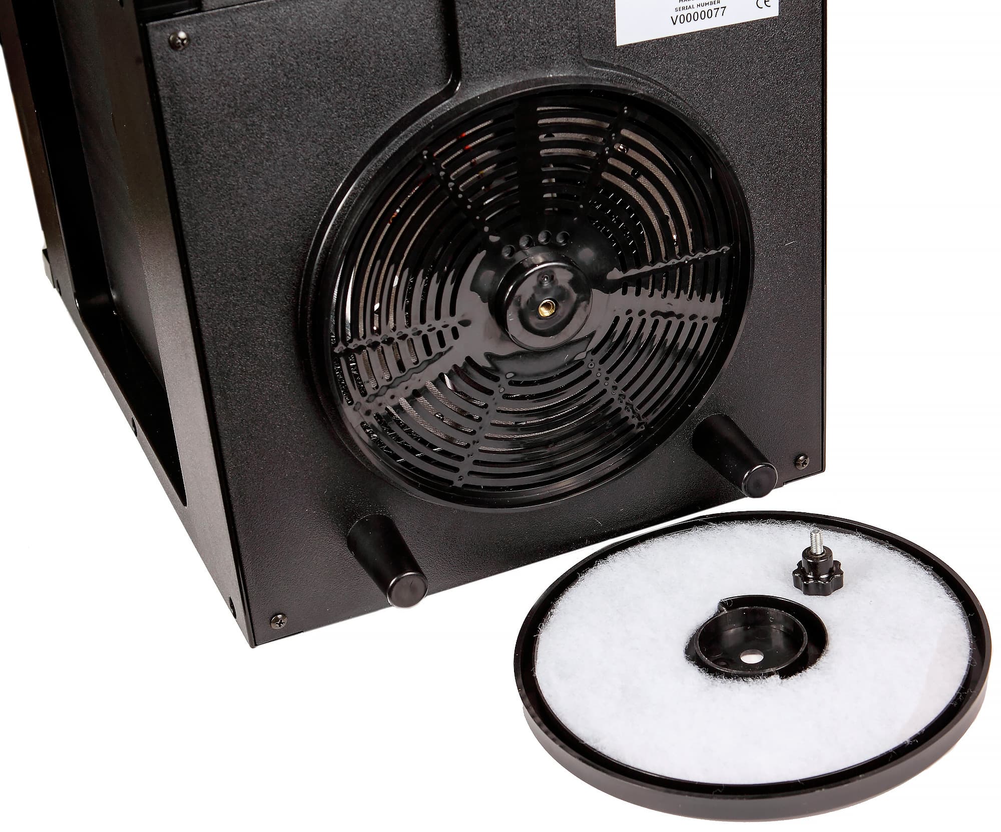 На задней стенке прибора расположена решетка засасывающего воздух вентилятора. Она достаточно мелкая и снабжена дополнительным фильтром, чтобы пыль не попадала внутрь. В комплекте имеются два запасных фильтра, менять их очень легко: надо отвинтить держащий винт на крышке вентилятора, вынуть использованный фильтр и вложить новый.