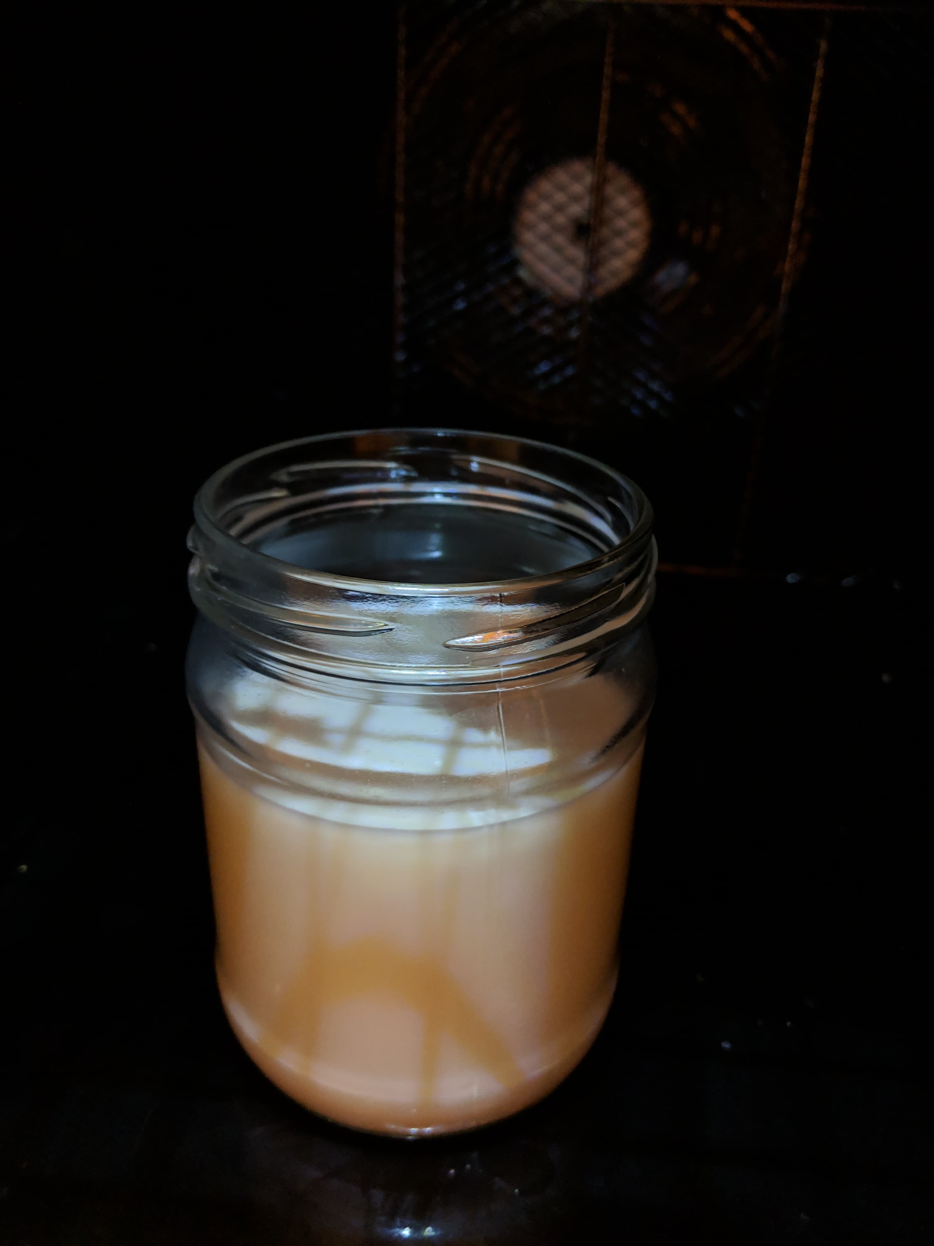Практически на глаз отмерили пол-литра обычного магазинного молока, согрели его в микроволновке примерно до 60 градусов, затем небольшую часть перемешали с первым попавшимся живым йогуртом без добавок и тщательно смешали с остальным молоком.