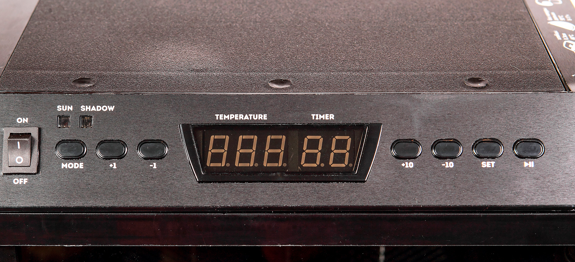 Еще правее на панели мы видим кнопки +1 и −1. Вот это и есть небольшое неудобство панели: эти две кнопки относятся к ручному выставлению таймера и температурного режима и имеют «сестренок» — кнопки +10 и −10, расположенные правее светодиодного дисплея. Он находится в центре панели и отлично виден.Левая его сторона отдана температуре, а правая — таймеру. Показания дисплея крупные, хорошо заметные, подходить к прибору, чтобы их прочитать, не надо.