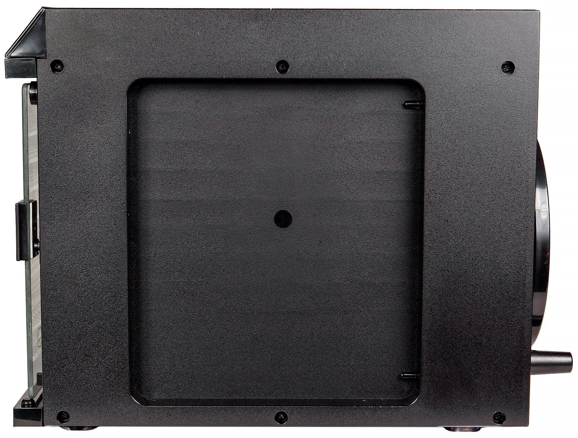 Левая и правая стенки идентичны: сплошной черный пластик с углублением посередине. Благодаря этим углублениям дегидратор удобно переносить.