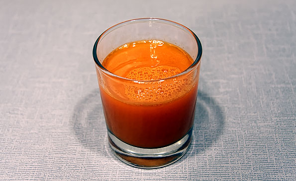 Предварительно нарезанный килограмм моркови был переработан за 2 минуты 50 секунд (показания мощности при этом оказались выше заявленных и доходили до 230 Вт). Вес сока составил 489 г, объем — 460 мл.