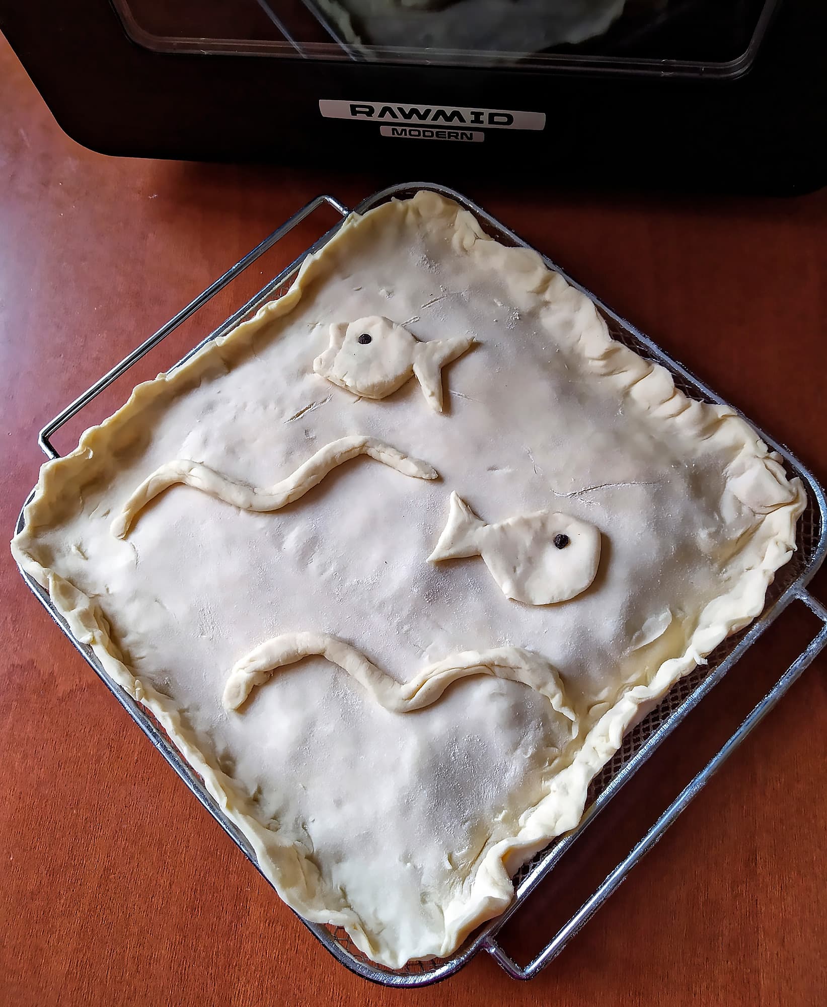Там, где есть духовка, рано или поздно появляется выпечка. RMA-02 только прикидывается просто какой-то там фритюрницей, на деле являясь полноценной, хоть и небольшой, печью. Так что мы решили делегировать ей пирог с треской и картофелем.