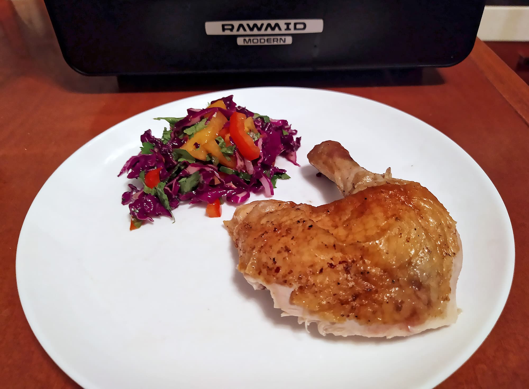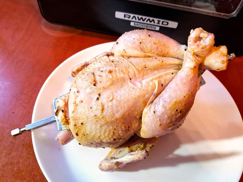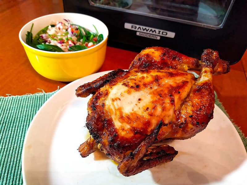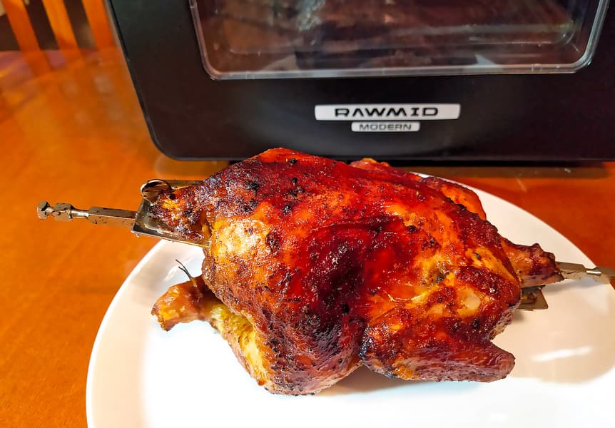 На сайте Rawmid курица-гриль идет второй (первый — картофель-фри) в списке блюд, которые можно готовить в Modern RMA-02. Мысль о ней и правда приходит в голову, как только видишь устройство печи и вертел.