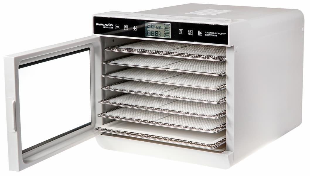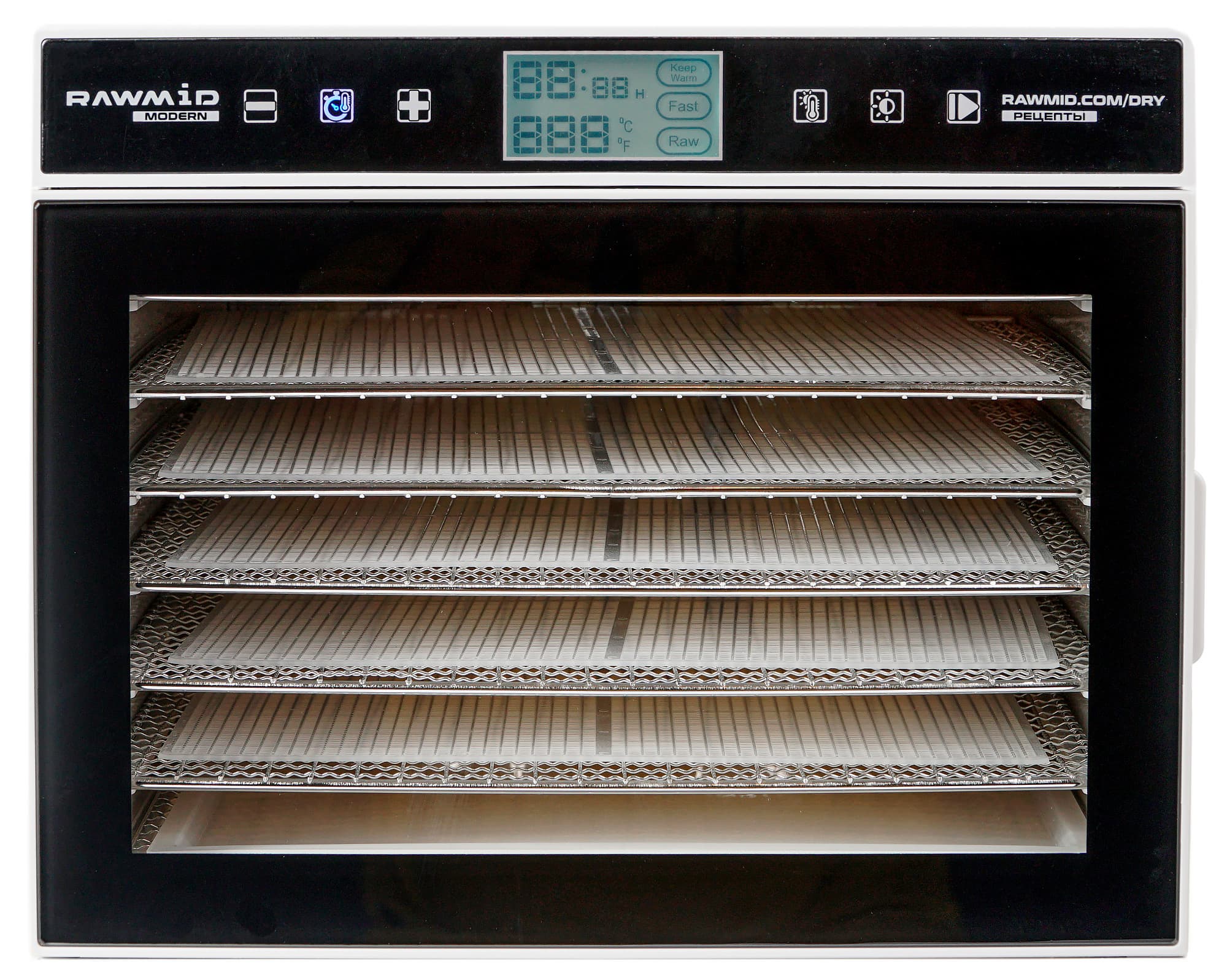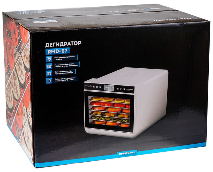 Дегидратор Rawmid Modern RMD-07 нам понравился. Это хоть и достаточно дорогой, но многофункциональный прибор. В отличие от обычных недорогих сушилок круглой формы, которые достаются из закромов в период сезона заготовок, это устройство явно рассчитано на постоянное пребывание на кухне в зоне комфортной досягаемости. Благодаря квадратной форме и неплохому дизайну, дегидратор может занять свое полноправное место на столе, наряду с микроволновкой или блендером.