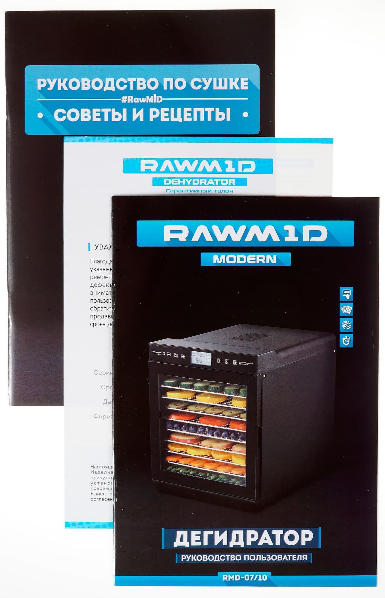 Комплектация у Rawmid Modern RMD-07/10 богатая, лотки разнообразные, и их достаточное количество для полной загрузки прибора.