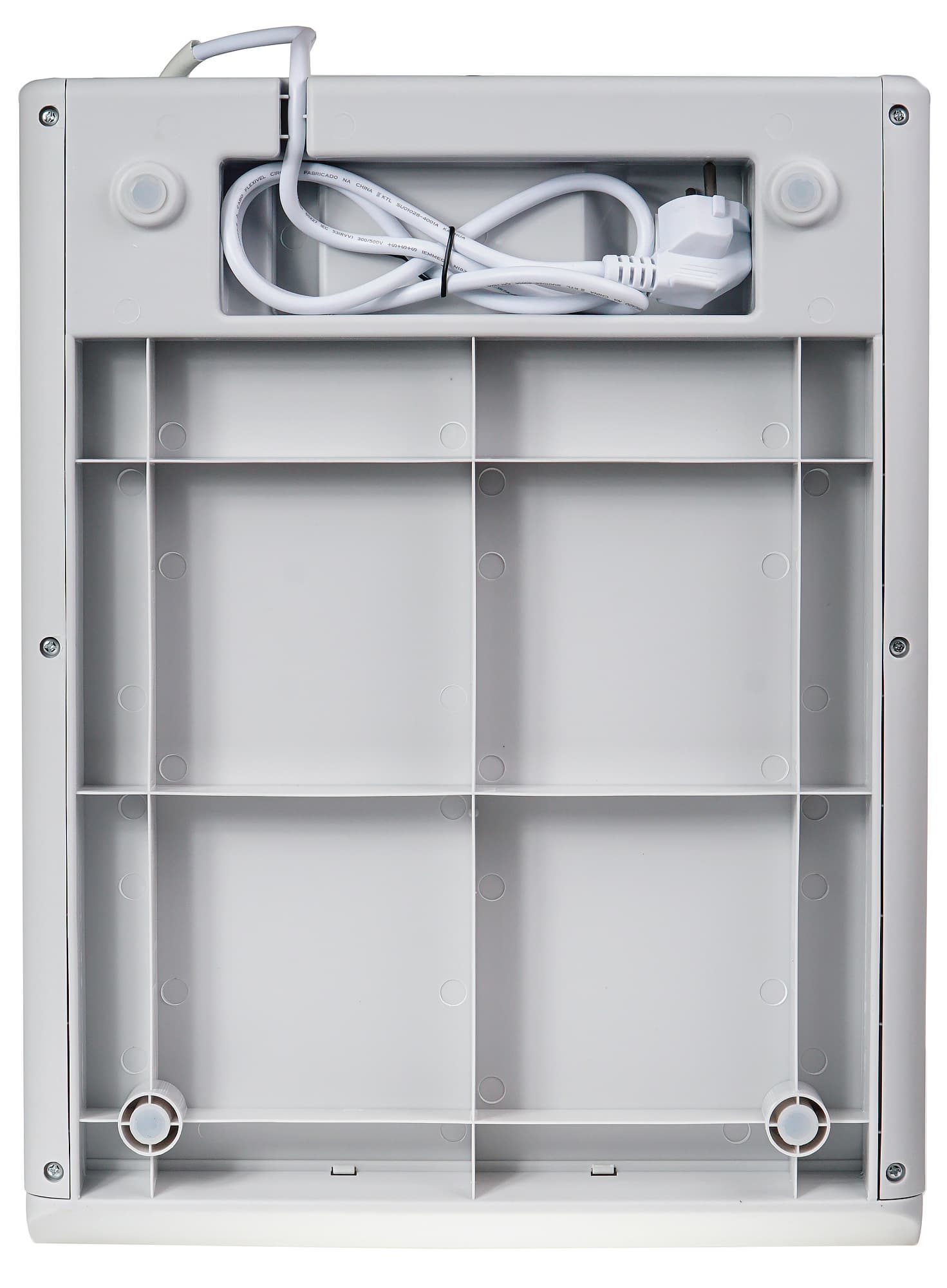 Прибор стоит на четырех прорезиненных ножках и имеет снизу удобный отсек для шнура.