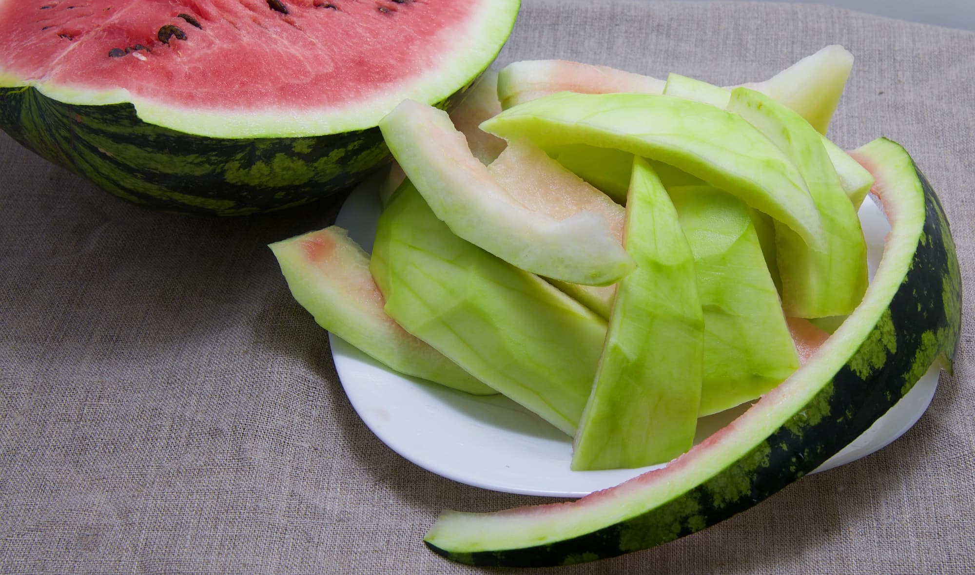Мы использовали корки без зеленого слоя кожуры, срезанные с половины большого осеннего арбуза. Делали цукаты по рецепту из руководства, пересчитывая пропорции на наш объем. Температуру сиропа не поднимали выше 82 °C.