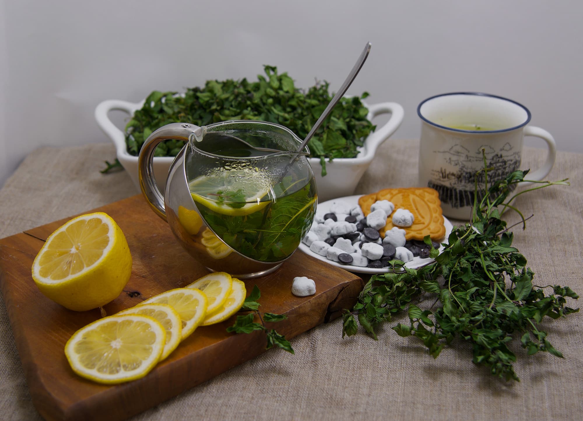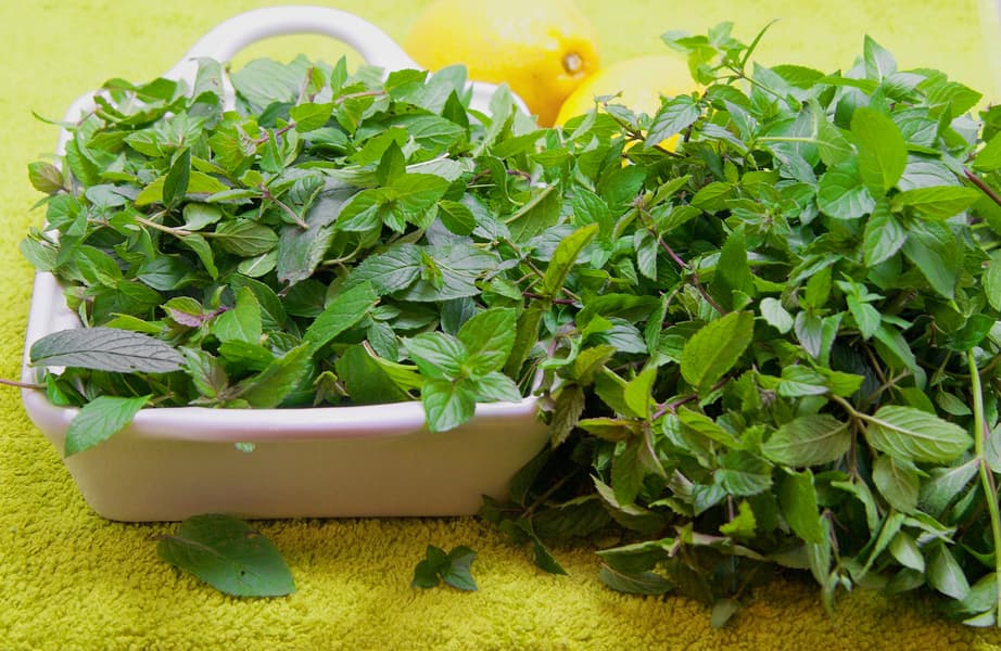 Мы взяли свежую мяту, вымыли, тщательно отряхнули и убрали все грубые стебли и завядшие некрасивые листья.