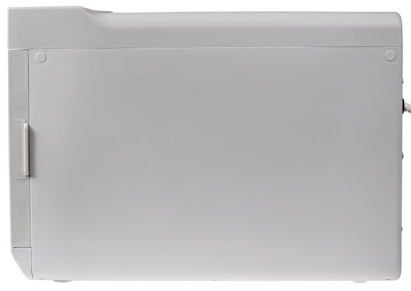 Внешне прибор напоминает скорее ростер или микроволновку, чем сушилку. Качество сборки и пластика очень порадовало. Дизайн тоже хорош: нет лишних деталей, острых углов, яркая синяя подсветка сочетается с черно-серым цветом оформления. Дегидратор органично впишется практически в любой интерьер, а благодаря своей квадратной форме не создаст нерационально используемых углов.