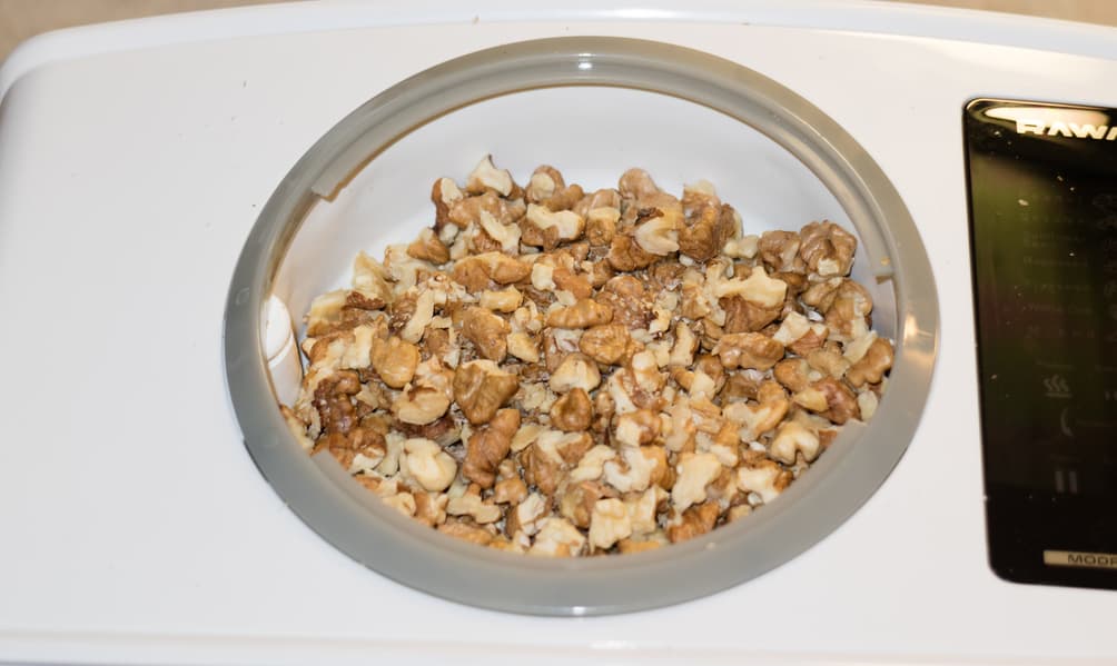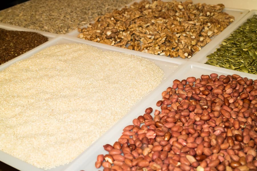 Перед отжимом все продукты, включая арахис, были подсушены в дегидраторе при 60 °C в течение двух часов. Все семена и орехи, за исключением тыквенных семечек и кедровых орешков, перерабатывались в предназначенном конкретно для данной культуры режиме. Указанные продукты были обработаны в режиме Mixed.