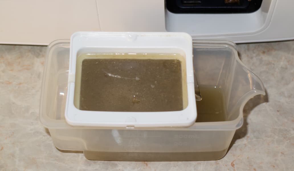 Лоток для сбора жмыха представляет собой довольно большой пластиковый контейнер. Высота стенок чуть больше 8 см. Объем лотка 3,5 л.
