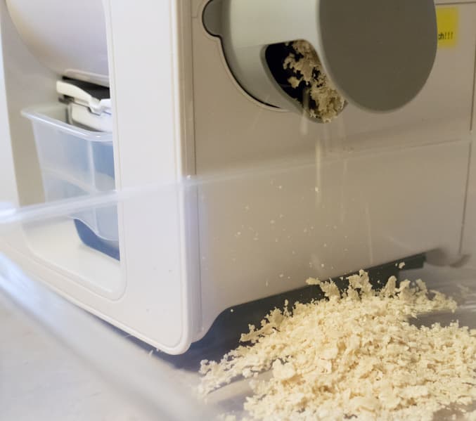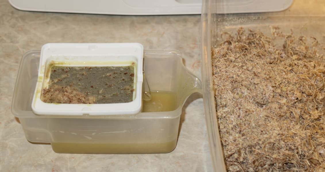 Также следует присматривать за выходом жмыха, иначе он рискует насыпаться высокой горкой и выйти за края емкости.