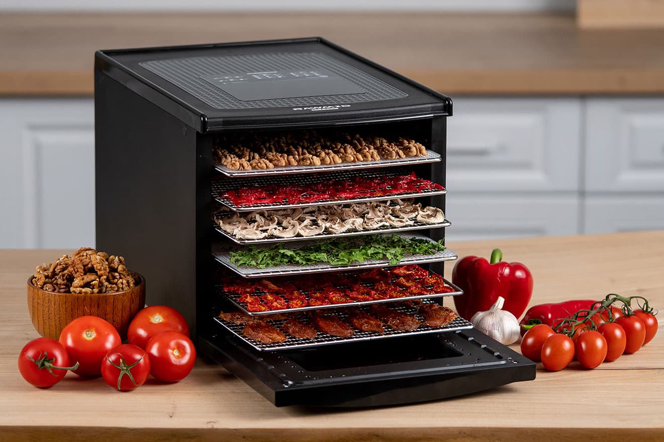 Идеальная сушка без необходимости постоянно проверять, ворошить содержимое лотков, менять поддоны местами и переживать, что забыл вовремя выключить — с дегидратором Rawmid Classic RCD-06. Нужно лишь правильно подготовить качественное сырье, тонко нарезать и разложить на поддоны. Кстати, резать тонко не обязательно: эта модель имеет шесть уровней, но количество установленных металлических сеток можно менять на свое усмотрение, что позволяет сушить продукты практически любых форм и размеров.