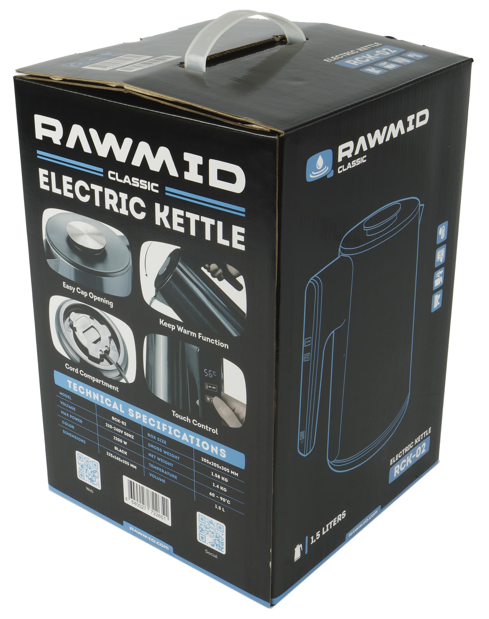 Электрический чайник Rawmid RCK-02 понравился нам строгим и стильным оформлением и несложным, удобным управлением. Благодаря двухслойной конструкции корпуса он долго сохраняет тепло, что позволяет избежать лишних затрат электроэнергии для дополнительного кипячения или подогрева. И обжечься об его поверхность невозможно.