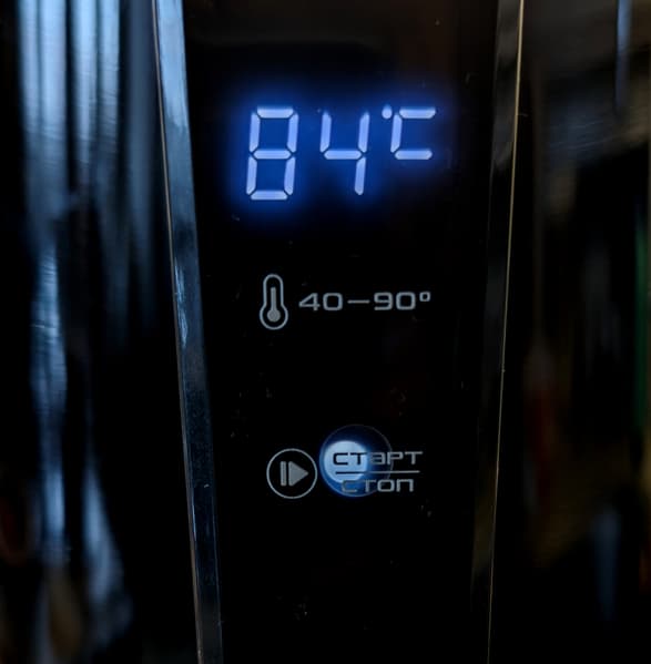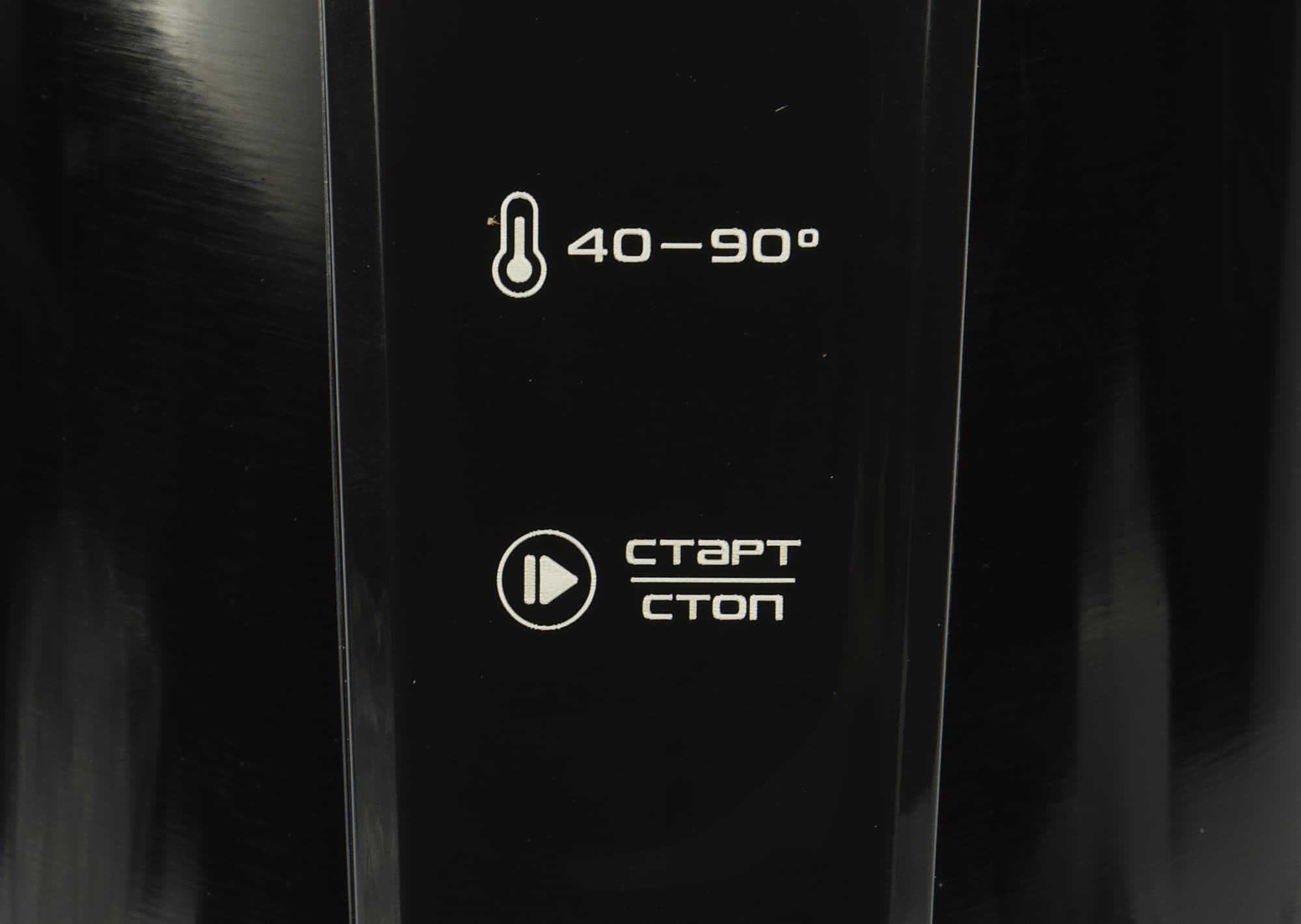 Эта модель позволяет также вскипятить воду, а затем поддерживать заданную температуру. Для этого после нажатия на кнопку «Старт/Стоп» можно установить нужное значение сенсором «Температура».