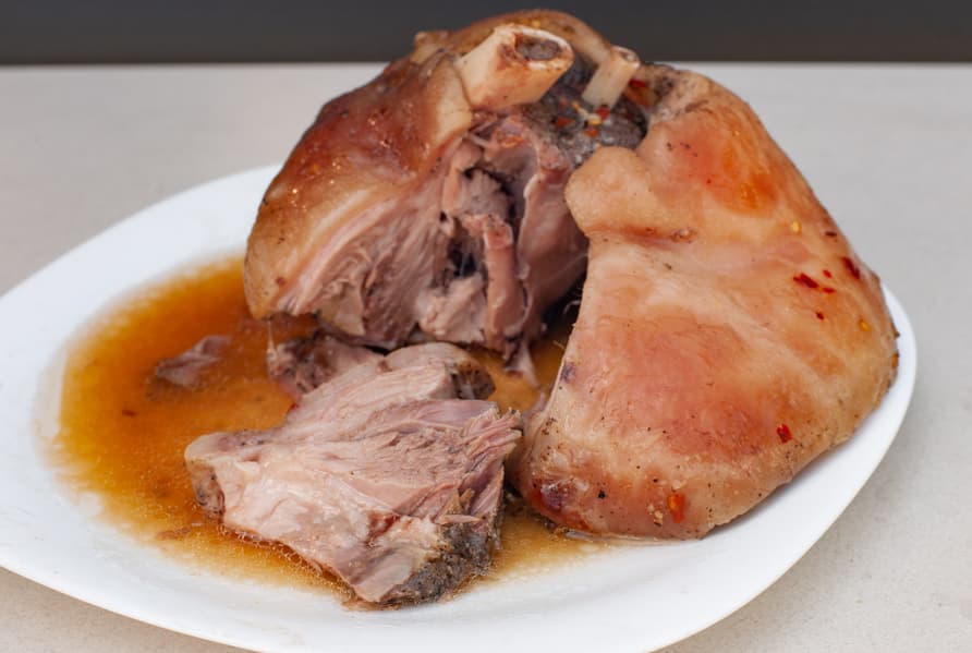 Предварительно мы замариновали рульку в специях и соли в течение нескольких часов. Завернули ее в пару слоев фольги, положили на поддон, выставили режим «гриль с паром» на 2 часа. После того, как прибор сообщил об окончании программы мы держали рульку еще около часа в закрытой духовке. Сняли фольгу, подали на стол. Получилось невероятно вкусное и нежное мясо.