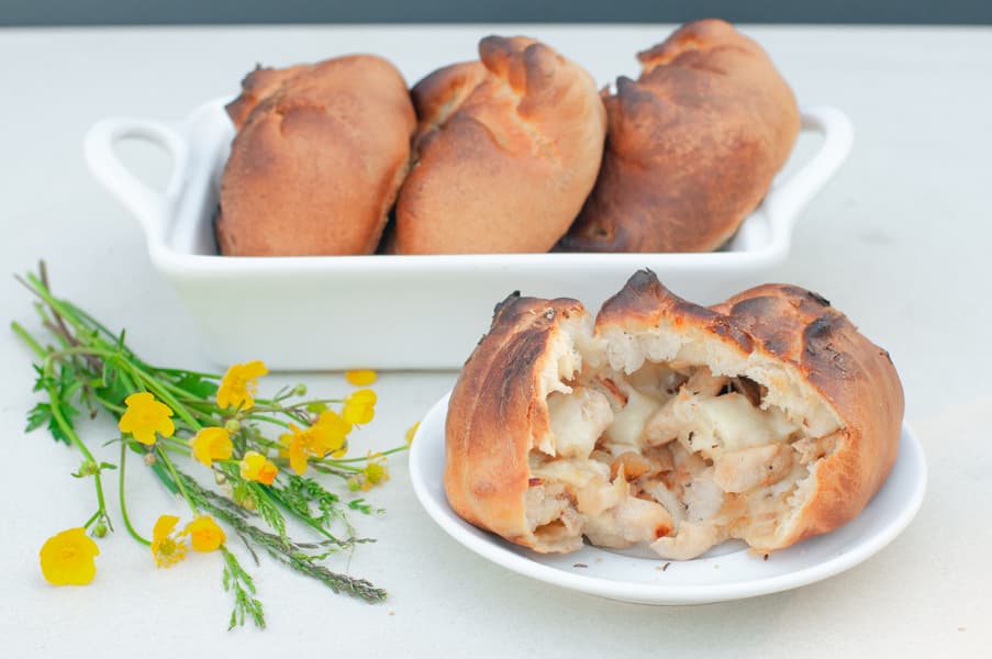 Пирожки с начинкой из курицы мы готовили на режиме гриль при тех же 200 °C. Тесто хорошо пропеклось, но верхушки пирожков немного подгорели.