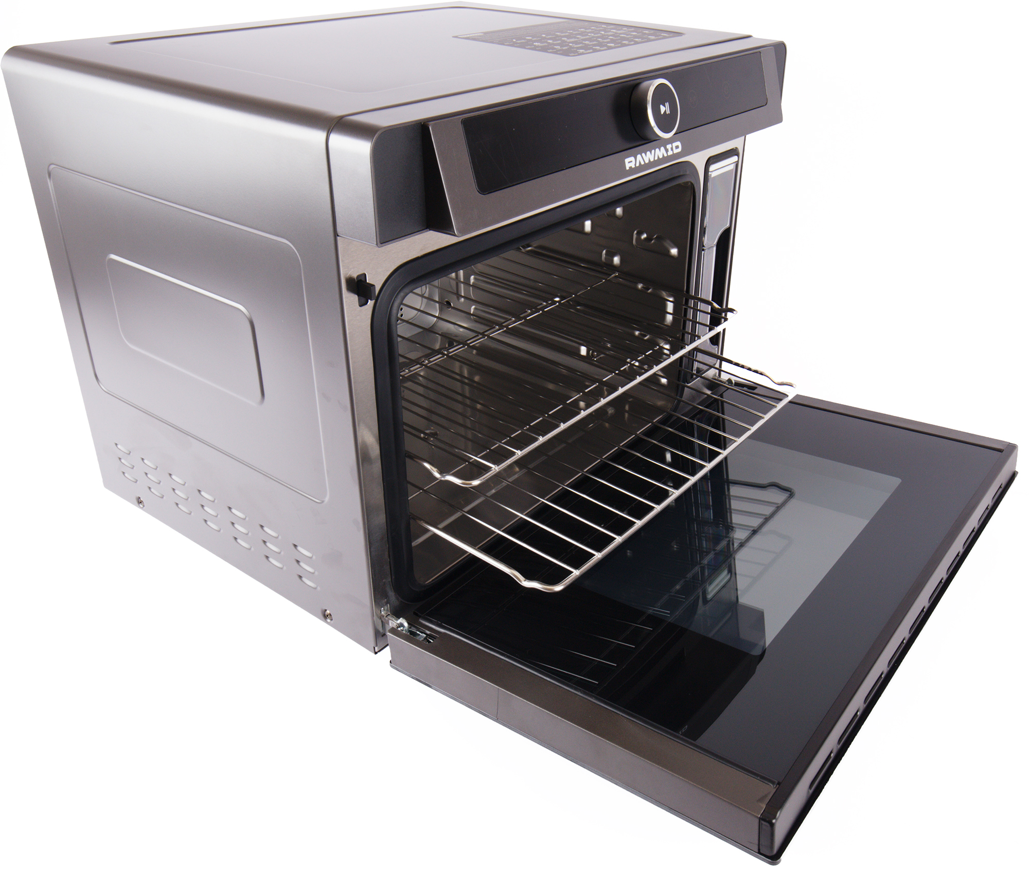 Пароконвектомат — конвекционная печь с функцией приготовления на пару́. Это практически профессиональное оборудование. Небольшие пароконвектоматы используют в кафе и минипекарнях, большие — на предприятиях, в кондитерских и цехах для выпечки. Они гарантируют высокое стабильное качество приготовления, широту использования и отличный результат. Вместе с тем, конвекционная печь с функцией пара — достаточно дорогое устройство, цена которого легко может составлять 100 тысяч рублей. Компания Rawmid представила на рынке новинку 2021 года — печь Future RFM-01, имеющую функции профессиональных пароконвектоматов, но значительно более доступную по цене. У нее современный дизайн, есть более 30 автоматических программ, электронное управление и возможность комбинирования функций аэрофритюрницы, гриля и пропаривания. Тестируем, изучаем, разбираемся в отличиях от обычного духового шкафа.