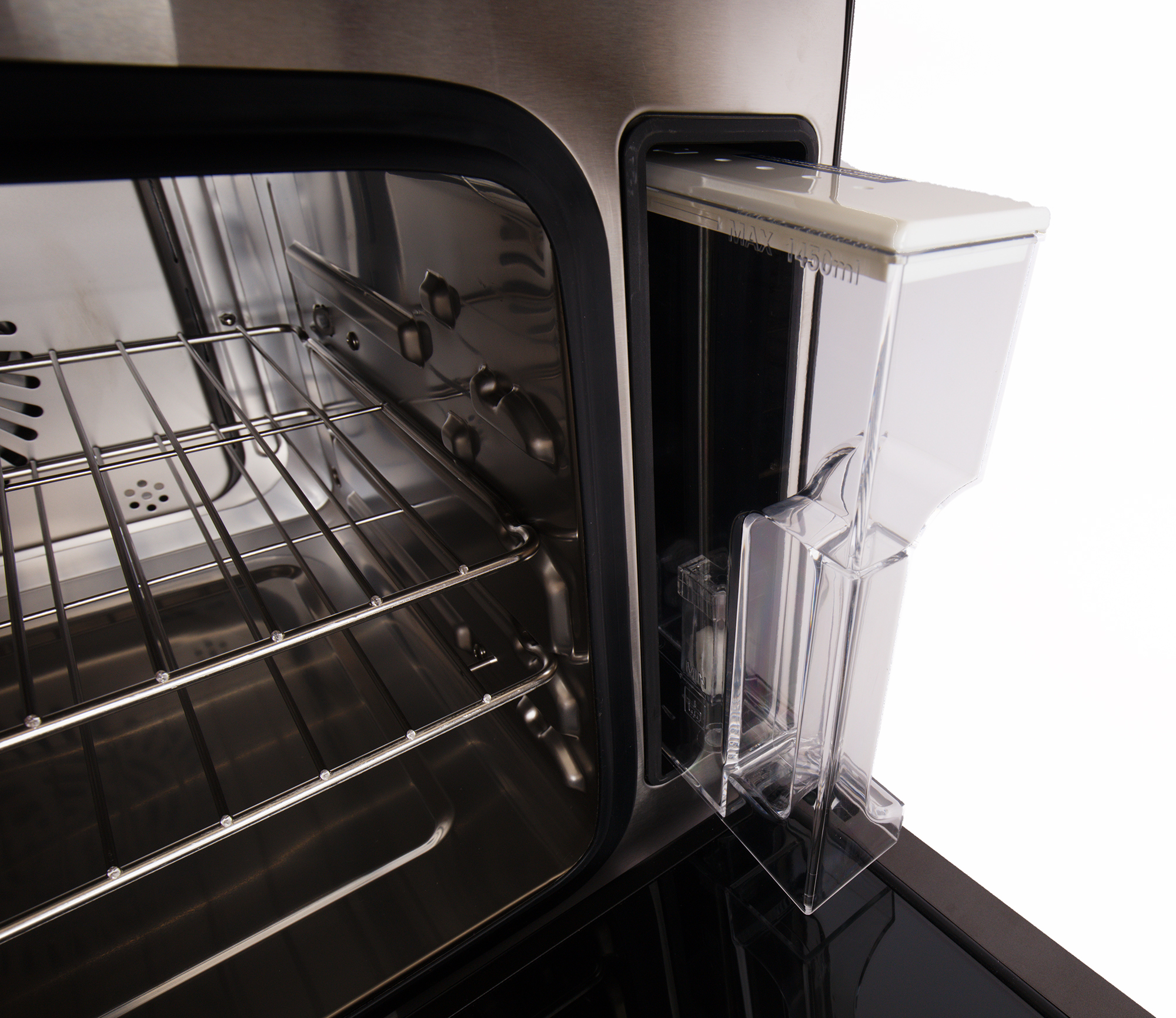 Благодаря присутствию пара при жарке, мясо остается сочным, при этом легко отделяется от костей, не подгорает при длительной термообработке. Емкости воды хватает при жарке на несколько часов, при приготовлении на пару́ — примерно на 1-2 часа работы. Как только вода заканчивается, мультипечь издает 10 звуковых сигналов и приостанавливает работу, блокируя клавиши и кнопки, до появления воды в емкости.