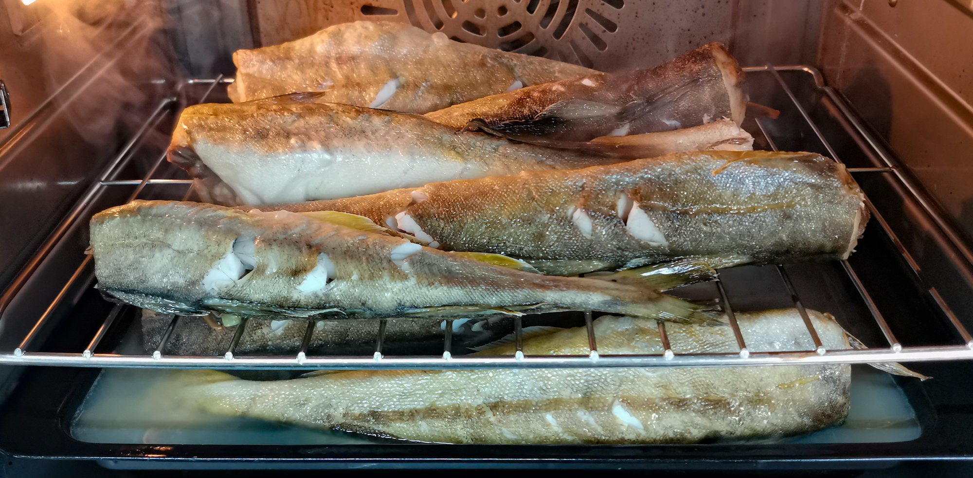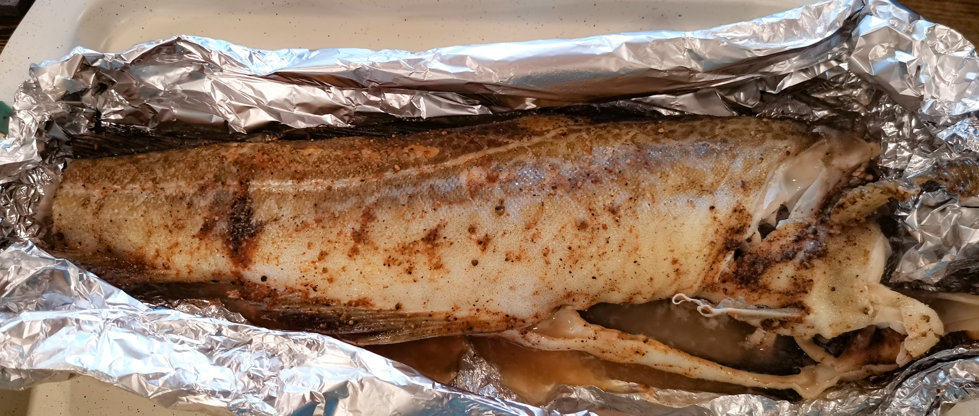 Треска приготовилась хорошо, мясо легко отделялась от костей и получилось очень нежным.