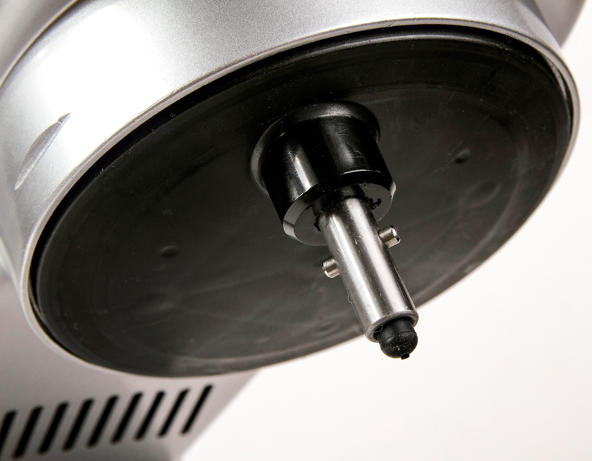 Приводной вал планетарного миксера стальной, с запрессованным поперечным штифтом для передачи крутящего момента на насадку. Крюк, лопатка и венчик фиксируются на моторном шпинделе обычным для такого типа креплений способом: нужно совместить пазы на валу с выступами на насадке, вставить до упора и повернуть против часовой стрелки.