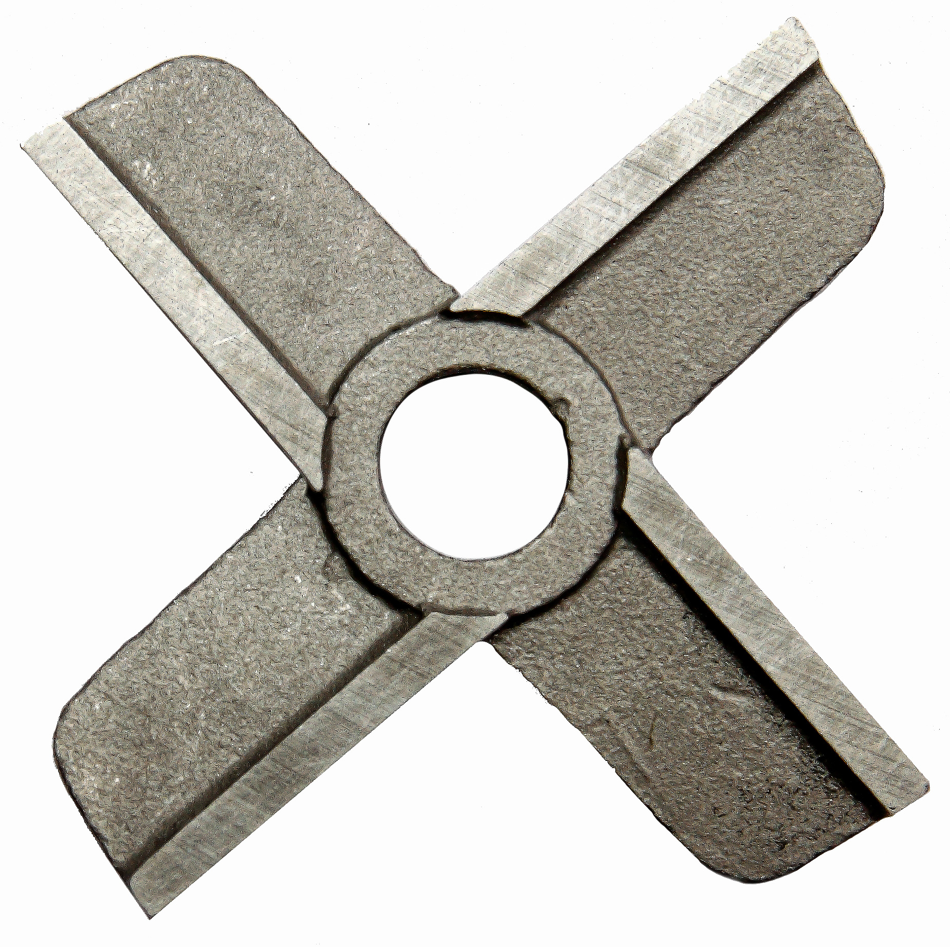 Форма четырехлепесткового ножа типовая, без инноваций — две противоположно ориентированные лопасти расположены горизонтально, две другие — приподняты под небольшим углом. На дне видим такой же термодатчик, как и в деже: небольшой металлический выступ, проложенный силиконовой прокладкой.