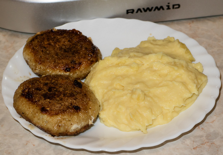 Из полученного фарша приготовили обычные котлеты. Как раз к картофельному пюре, сделанному в предыдущем тесте.