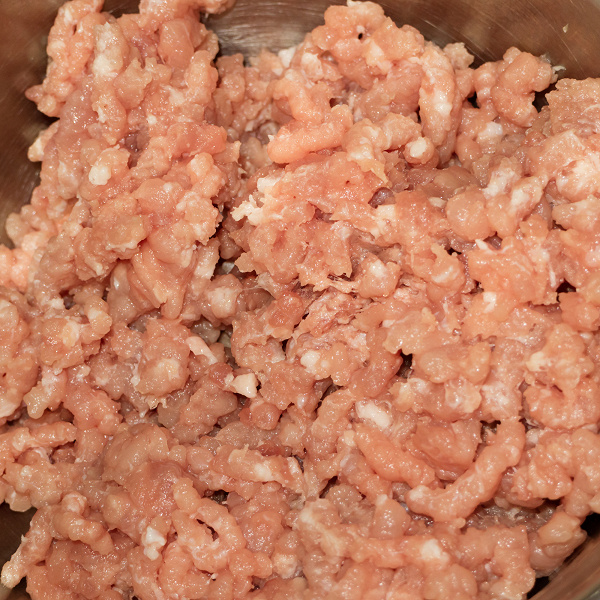 Установили в чашу комбайна S-образные ножи. Измельчали 300 г (как рекомендовано в инструкции) куриной грудки циклами по 5 секунд. Всего для качественной обработки понадобилось три цикла на пятой скорости.
