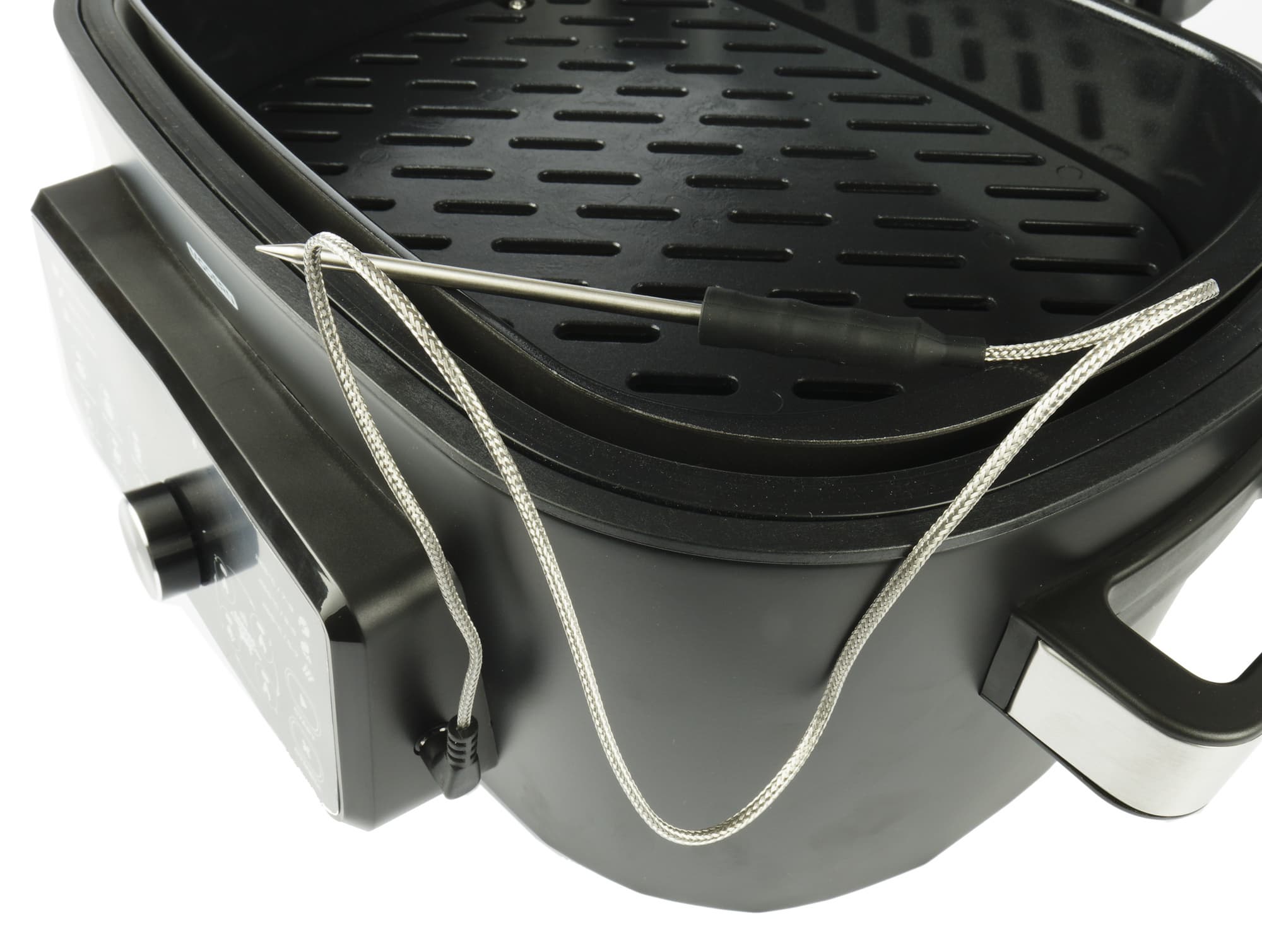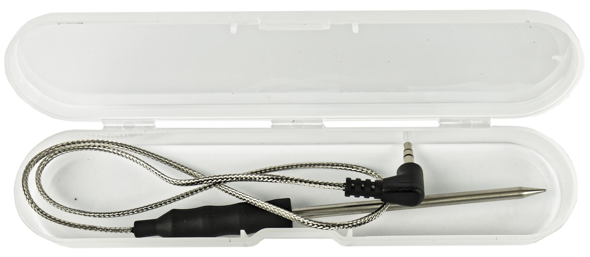 В отдельной пластиковой коробочке находится термощуп, позволяющий контролировать процесс приготовления мяса до нужной температуры.