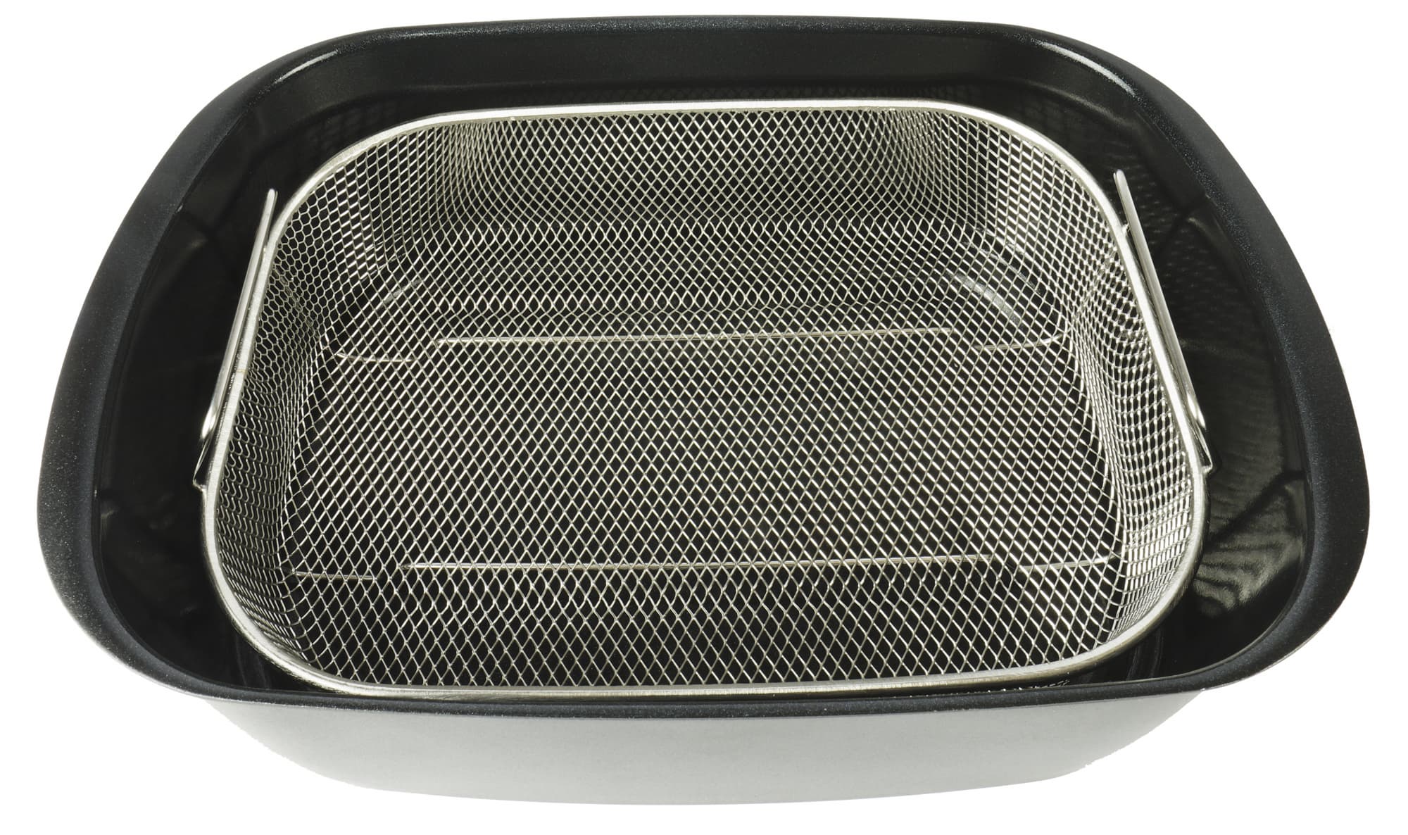 Также в комплект входит съемная сетчатая корзина из пищевой нержавеющей стали, которую можно использовать для приготовления картофеля-фри и аналогичных блюд.