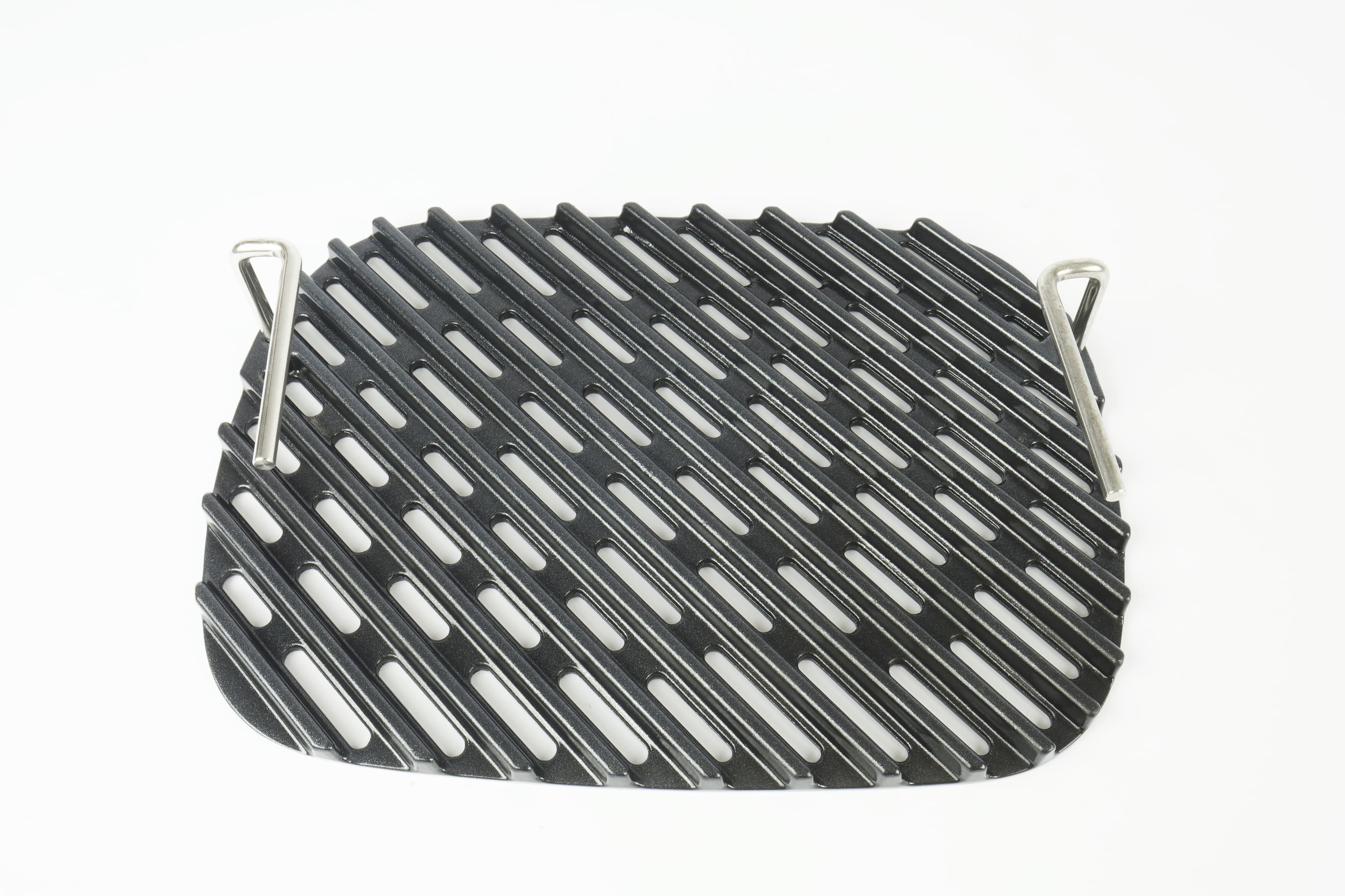 Решетка-гриль, выполненная из теплопроводного алюминия с керамическим антипригарным покрытием, имеет типичный рельеф с полосками и бороздками. Кроме того, решетка снабжена двумя ручками, за которые удобно браться при установке и удалении решетки.