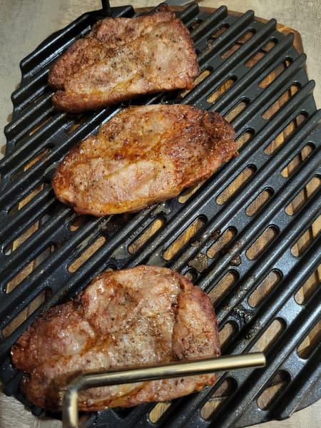 Решетка гриля досточно большая, и ее хватает на два стейка. Наверное, пригодился бы и второй термощуп, но если мы одновременно отправляем примерно одинаковые куски мяса в гриль, то и достигнут они заданной температуры примерно в одно и то же время, так что вряд ли это является серьезной проблемой.