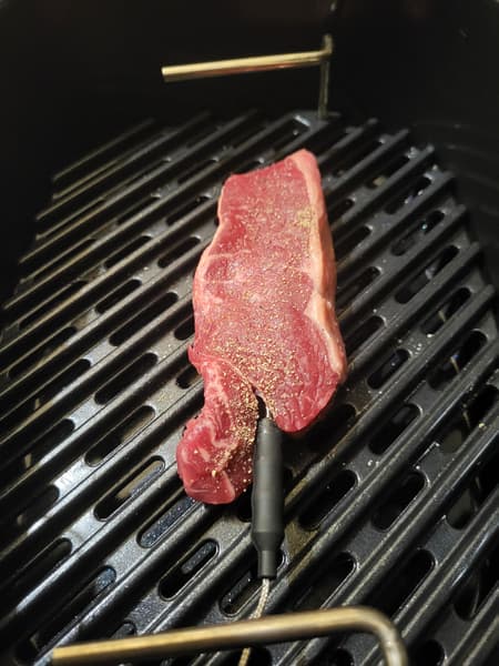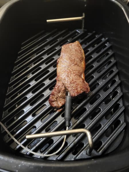 Несколько раз мы готовили в аэрогриле стейки, используя термощуп, и результат нас неизменно удовлетворял.