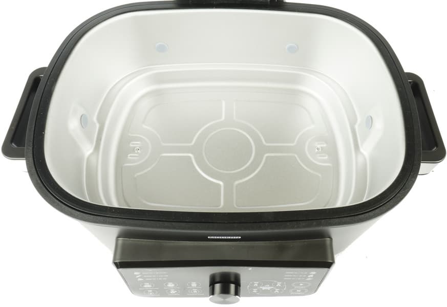 Чаша имеет стойкое керамическое антипригарное покрытие, с которого без проблем смываются остатки пищи.