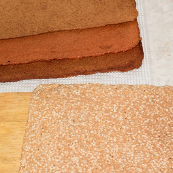 Для приготовления понадобилось обработка в дегидраторе на 50 °C в течение шести часов. Мягкие, вкусные хлебцы, которые можно употреблять и в качестве хлеба, и в качестве снека, если требуется перекусить.